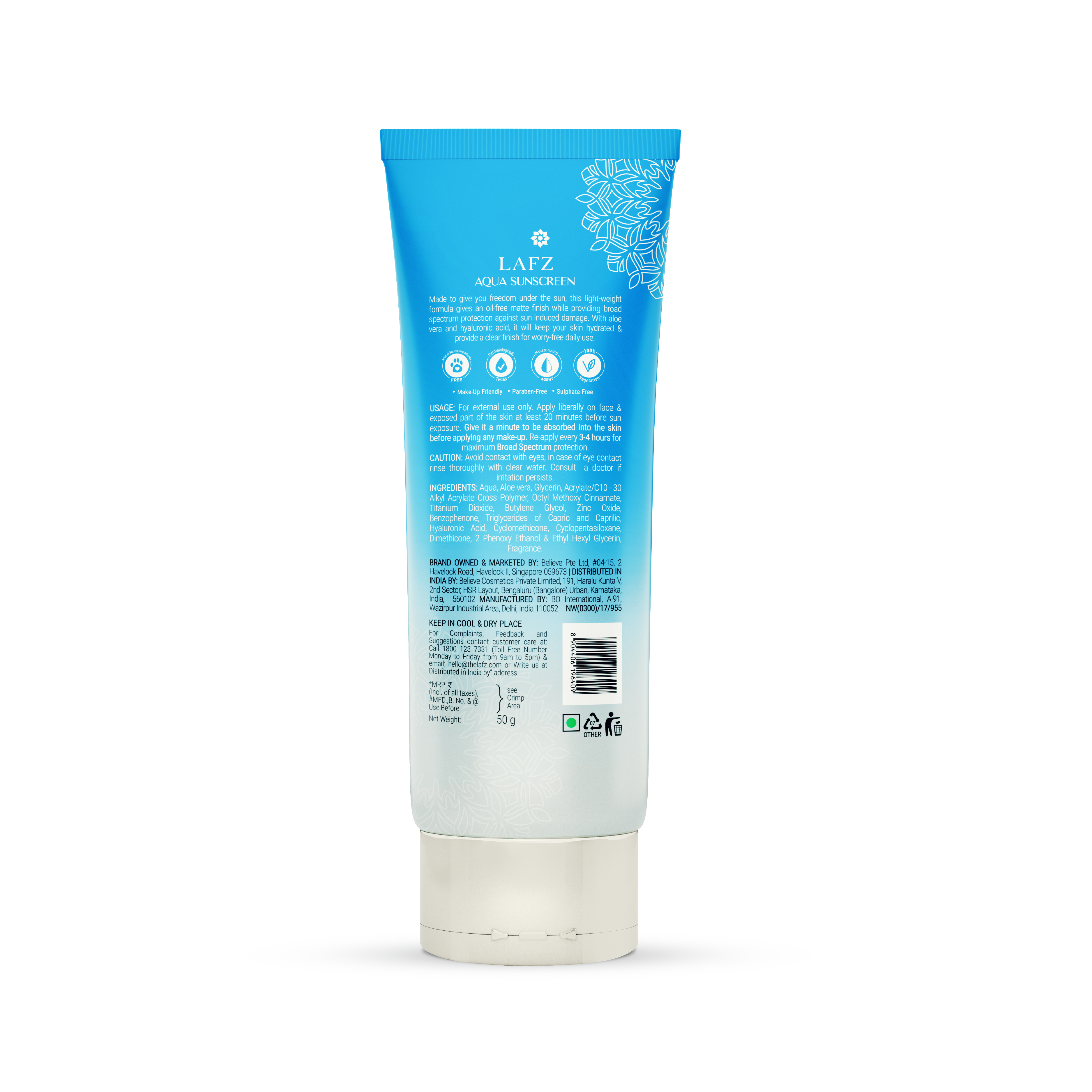 | Made to give you the freedom under the sun, this SPF 50 lightweight formula gives an oil-free matte finish while protecting you from the harsh sun. With aloe vera and hyaluronic acid, not only will it keep your skin hydrated but will also provide a clear finish for a worry-free daily use.Formulated with aloe vera and hyaluronic acid, this aqua sunscreen locks in the moisture and keeps the skin hydrated, give you a dewy look. |