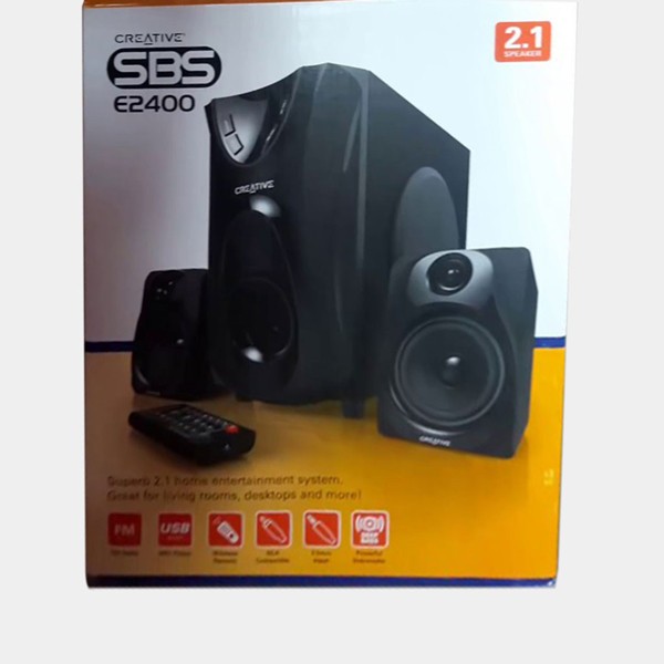 Superb 2.1 home entertainment system Positioned to be your multi purpose home entertainment speaker system in your living room, the Creative SBS E2400 is built with multiple connectivity options with superb audio performance in mind. The E2400 comes with an abundance of connectivity options and features that includes a built in FM radio receiver, 3.5mm inputs, RCA^ connectivity and USB memory stick support. You can conveniently connect it to the TV, DVD player or even your mobile phone. The E2400 is absolutely perfect for your movies, games and music!