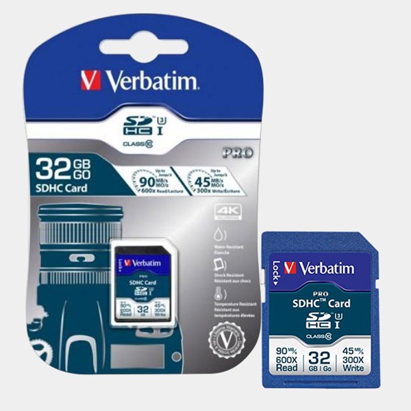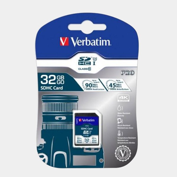 Verbatim’s Pro SDHC Class 10 Memory Cards feature UHS-I U3 performance capabilities and a V30 video speed class to let serious enthusiasts record strikingly detailed 4K video, and shoot continuous burst-action photos free of motion blur.