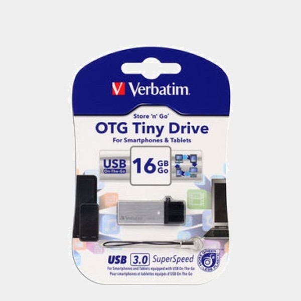Verbatim OTG (On-The-Go) Tiny USB3.0 Drive is a high performance dual head drive providing both microUSB and USB3.0 interfaces. Specially designed for OTG enabled portable devices like smartphones, and tablets, it provides users ultimate convenience for storing, and sharing digital content such as movies, pictures, andmusic, between all compatible devices